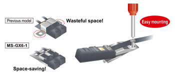 對于新的安裝支架[MS-GX6-1(另售)],1顆M3螺絲就可以對傳感器進(jìn)行安裝。同時,緊貼安裝,能夠節(jié)省電纜。 |