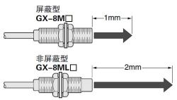 非屏蔽型(GX-8ML□)與屏蔽型(GX-8M□)相比,盡管大小相同但檢測(cè)距離增加2倍,且不易受檢測(cè)距離變動(dòng)影響。 |
