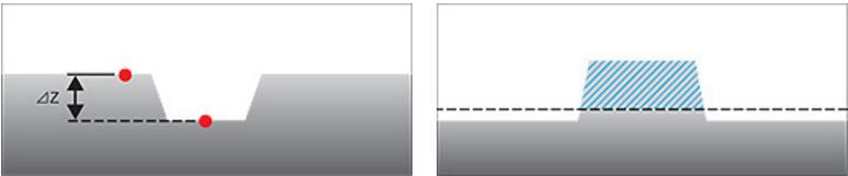 求取基準(zhǔn)值和測(cè)量值的高度差。 根據(jù)2點(diǎn)的測(cè)量值求取寬度。