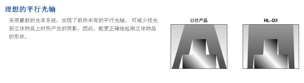 HL-D3系列產(chǎn)品則對(duì)測(cè)量寬度(X軸)內(nèi)進(jìn)行細(xì)分,并分別對(duì)各分割單位(稱(chēng)為“光量調(diào)整單位”)進(jìn)行投光量調(diào)節(jié),使敏感度最優(yōu)化,實(shí)現(xiàn)了穩(wěn)定而高精度的測(cè)量。