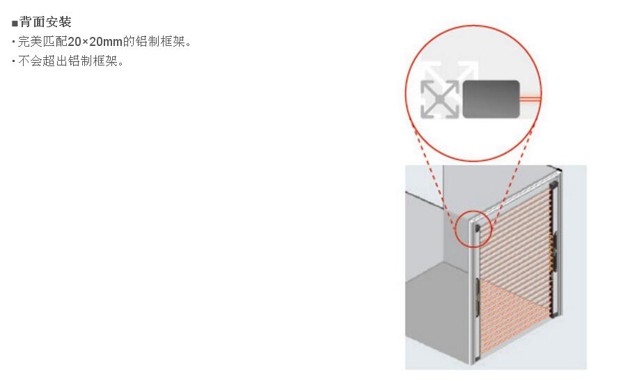 SF4B-C系列采用可完美融入鋁制框架的構(gòu)造,并能最大限度地利用開口。安裝時(shí),可實(shí)現(xiàn)零死角。