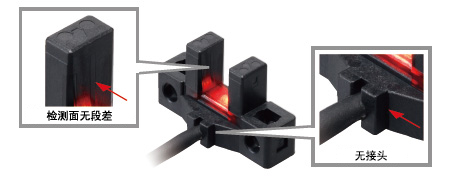 檢測(cè)部位的外形尺寸和本公司以往產(chǎn)品相同,通過(guò)將投光•受光部分厚度各減少0.5mm,可使投光•受光間隔擴(kuò)大1mm。大大降低了檢測(cè)物體和檢測(cè)部位發(fā)生沖擊的危險(xiǎn)性。